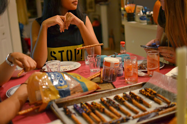 We also made chocolate dipped pretzel sticks for halloween..yum